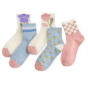【送料無料】[Ekieta] 靴下 レディース ソックス レディース 可愛い 靴下 セット 綿 暖かい 防寒 蒸れない 通気性 刺繍 上質な カジュアル靴下 四季適用 色:XC-タイプ(5足)、サイズ:Free Size