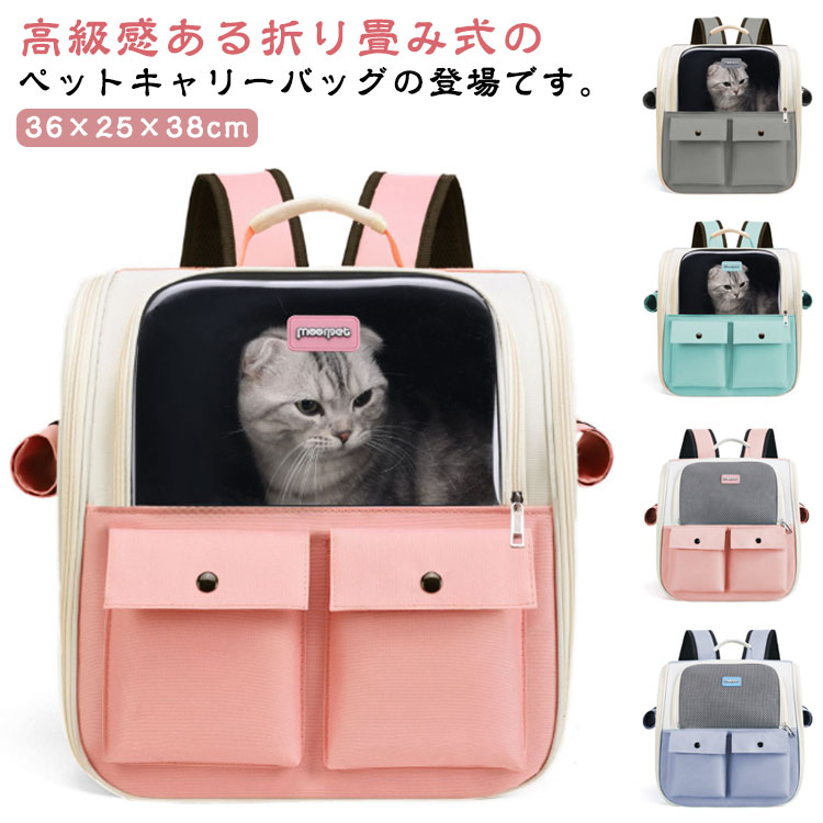 小型 猫 犬 ペットキャリー リュック バックパック 多機能 通気 軽量 折りたたみ 出入り2way メッシュ 窓 サイドポケット お出かけ 外出 キャンプ 旅行 電車 公共交通 ドライブ 移動 安全 防災 災害 避難 通院 ペット用品 夏 プレゼント Mサイズ 小型犬 夏