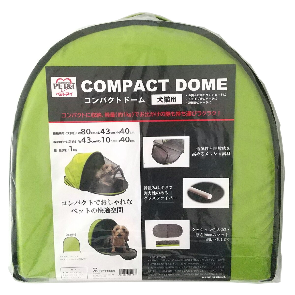 コンパクトドーム ペットアイ 犬猫用 ピクニック キャンプ ドライブ アウトドア ペットの防災対策 避難時 ケージ outdoor