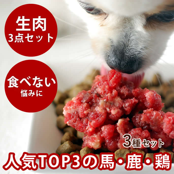 【ポイント5倍】生肉 人気 3点セット[簡単 手作り食]フード 生肉 馬肉 鶏肉 エゾ鹿肉 合計2.5kg チキン 高齢犬にチキン シニア フード 鹿肉 ペット ミンチ 低カロリー 人気 生肉 高齢犬 シニア 犬 手作りご飯 犬 手作りごはん お試し ごちそう 食いつき