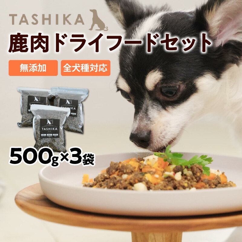 【ふるさと納税】鹿肉でできたドッグフード【ドライフード 1.5kg(500g×3袋) 1.5kg】ペット ペット用品 犬 犬用 餌 ペットフード 鹿肉 安全 国産 ジビエ おやつ ごはん 小粒 高タンパク 鉄分 低脂質 低カロリー グレインフリー アレルギー TASHIKA 送料無料