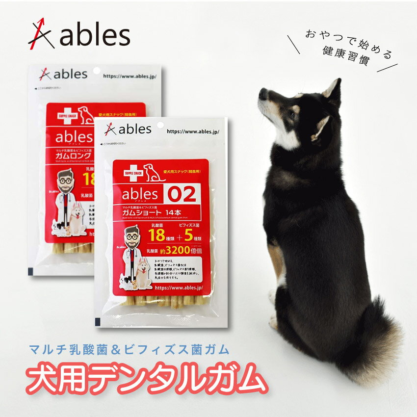 ables01 ables02 マルチ乳酸菌&ビフィズス菌ガム(ショート)(ロング) // ペットフード ドッグフード ペット 国産 ご褒美 おやつ 健康 犬用 デンタルガム 乳酸菌 健康 改善 予防 おやつ 日本製 ザペット