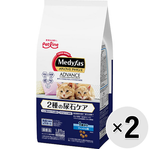 【セット販売】メディファス アドバンス 2種の尿石ケア 1歳から フィッシュ味 1.25kg×2コ