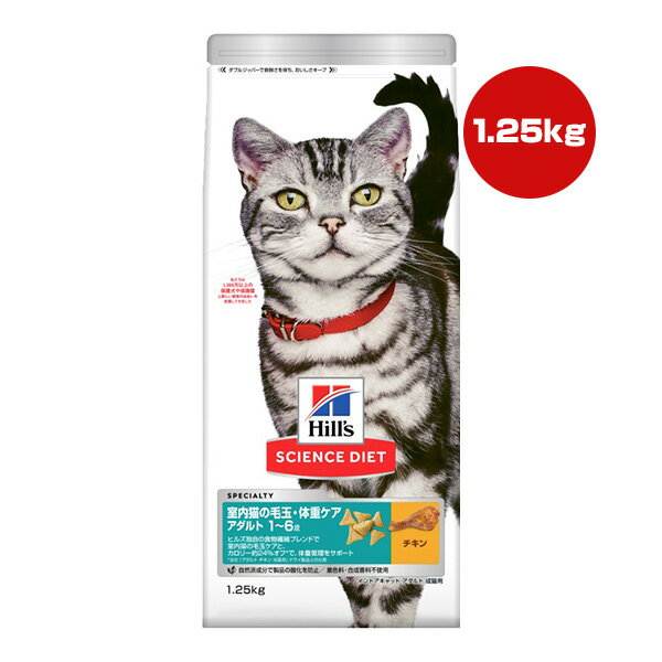 ヒルズ サイエンスダイエット 室内猫の毛玉・体重ケア アダルト 1〜6歳 チキン 1.25kg ▼a ペット フード 猫 キャット インドア 成猫 Hills