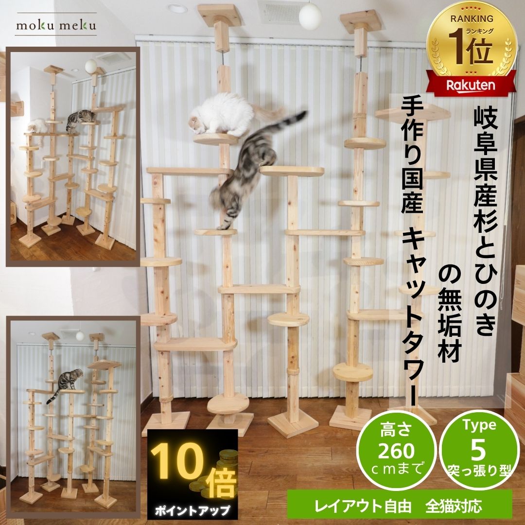 【 P10倍 anan 25ans 2誌掲載 22日から27日 5%offクーポン 】 建築家 大工 考案 画期的 ! ねこハウスシリーズ キャットタワー 突っ張り Type5 猫 遊び場 自由自在 カスタマイズ 増設 国産 スリム 木製
