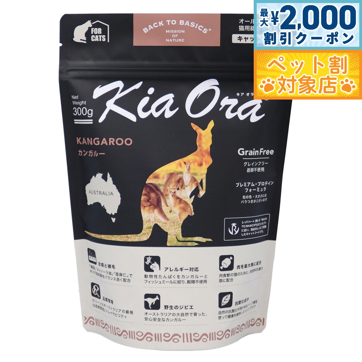 【最大2000円OFFクーポン!&店内ポイント最大59倍!本日限定!】キアオラ KiaOra キャットフード カンガルー 300g 猫 ドライフード 総合栄養食 無添加 グレインフリー 全猫種用 オールブリード