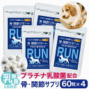 犬 ペット 関節 サプリ RUN ラン 骨 腰 ひざ グルコサミン コンドロイチン ビタミンD3 プラチナ乳酸菌 濃縮乳酸菌 ナノ型乳酸菌 国産 口腔 炎症 皮膚 被毛 免疫 腸活 サポート 送料無料 60粒×4