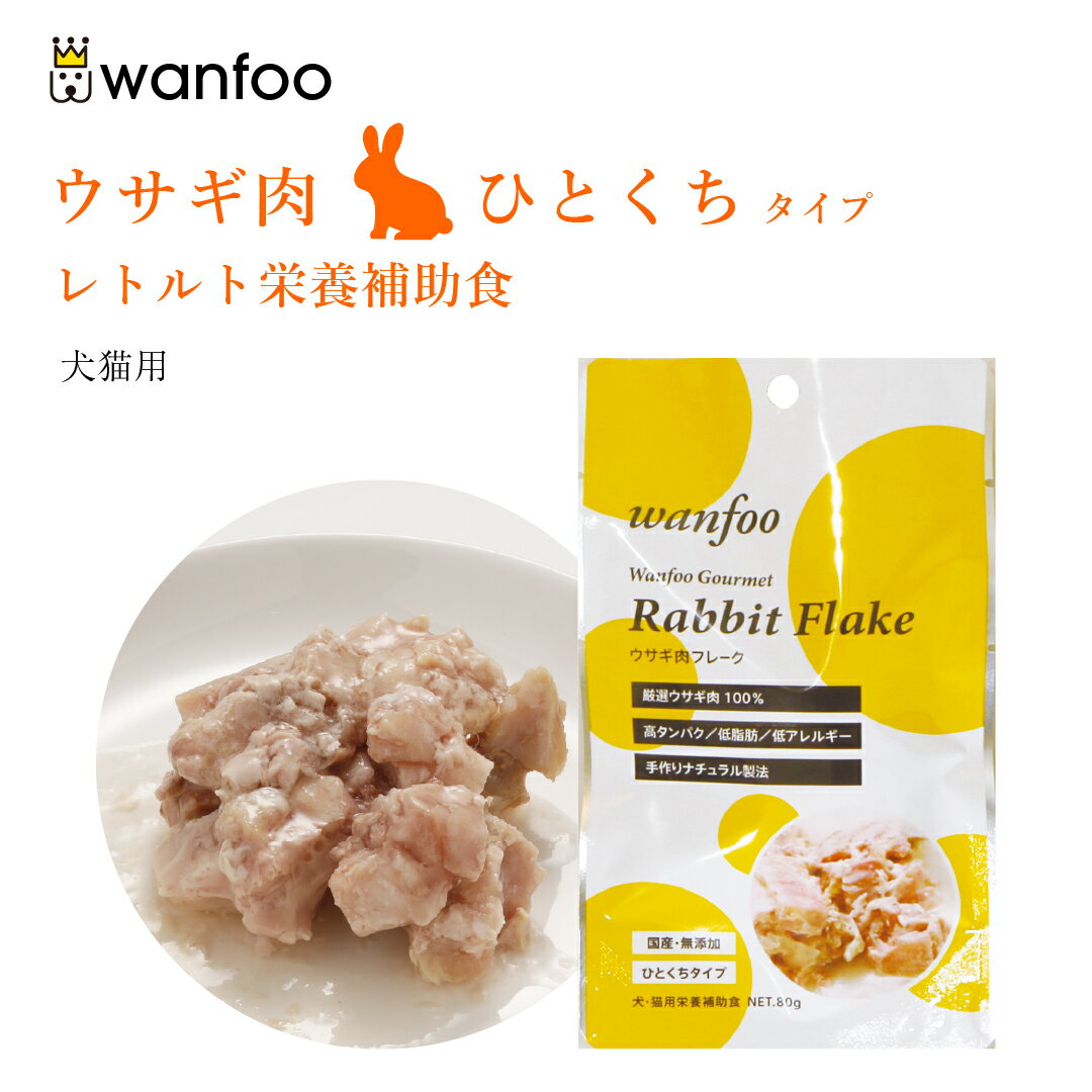 wanfoo ワンフー ひとくちタイプ(80g) ウサギ肉 栄養補助食 ペット 犬 猫 おやつ 補助食 トッピング レトルト ウェット ウサギ肉 国産 無添加