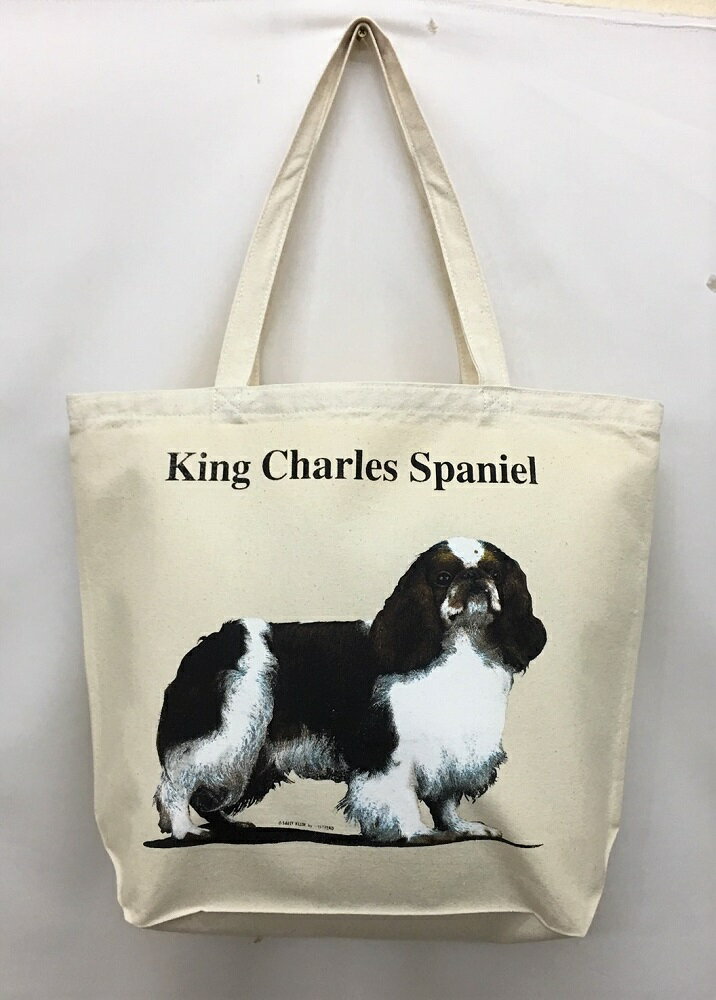 キングチャールズ スパニエルー (R-04) トートバッグ エコバッグ マイバッグ【Lサイズ/大】かわいい おしゃれ レディース メンズ 男女兼用 a4 大きめ キャンバス ドッグ 犬 犬柄 いぬ 犬プリント 犬グッズ