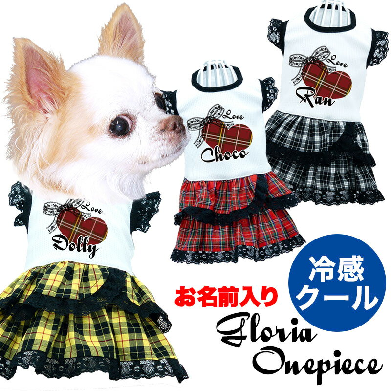 \P5倍★11/23 23:59まで/【犬 春夏服用 犬の服 名入れ】ひんやり 接触冷感素材 クール 愛犬のお名前入り グロリアワンピース【レース ハート リボン ペット ダックス トイプードル チワワ タムベディおしゃれ】[GI](H/)