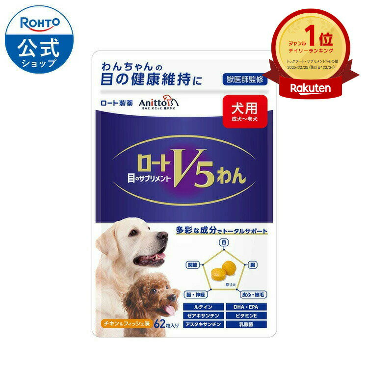 ロートV5わん(62粒) ロート製薬 公式 ロート v5 粒 犬用サプリ ルテイン DHA EPA ビタミンE 乳酸菌 サプリメント サプリ 犬用 シニア ペット 視界 ぼやけ かすみ