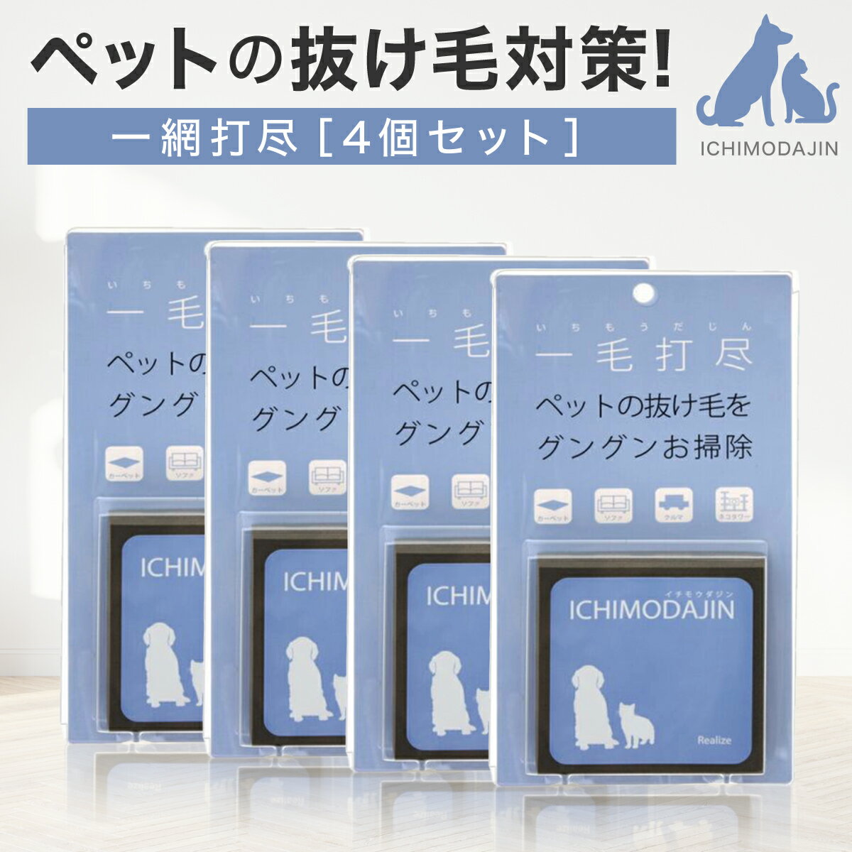 一毛打尽 4個セット ペット 抜け毛 対策 ハンディブラシ 犬 猫 うさぎ 用 掃除 カーペット ソファ 車内 毛布 クリーナー 毛取り いちもうだじん リアライズ カーシート