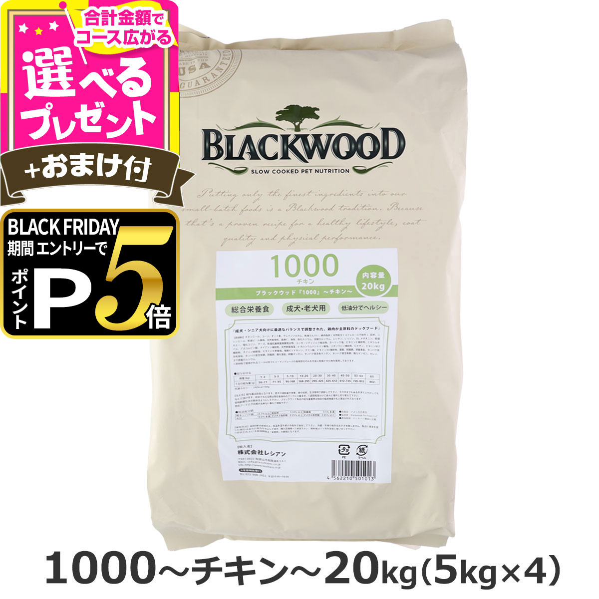 【ブラックフライデー限定!エントリーでさらにP5倍】ブラックウッド 1000 20kg(分包4袋入)+選べるおまけ付き 犬 ドッグフード Blackwood チキン 鶏 中粒 成犬 アダルト シニア ドックフード ペット フード ドライ 消化器 体臭 筋肉 皮膚 被毛【D】