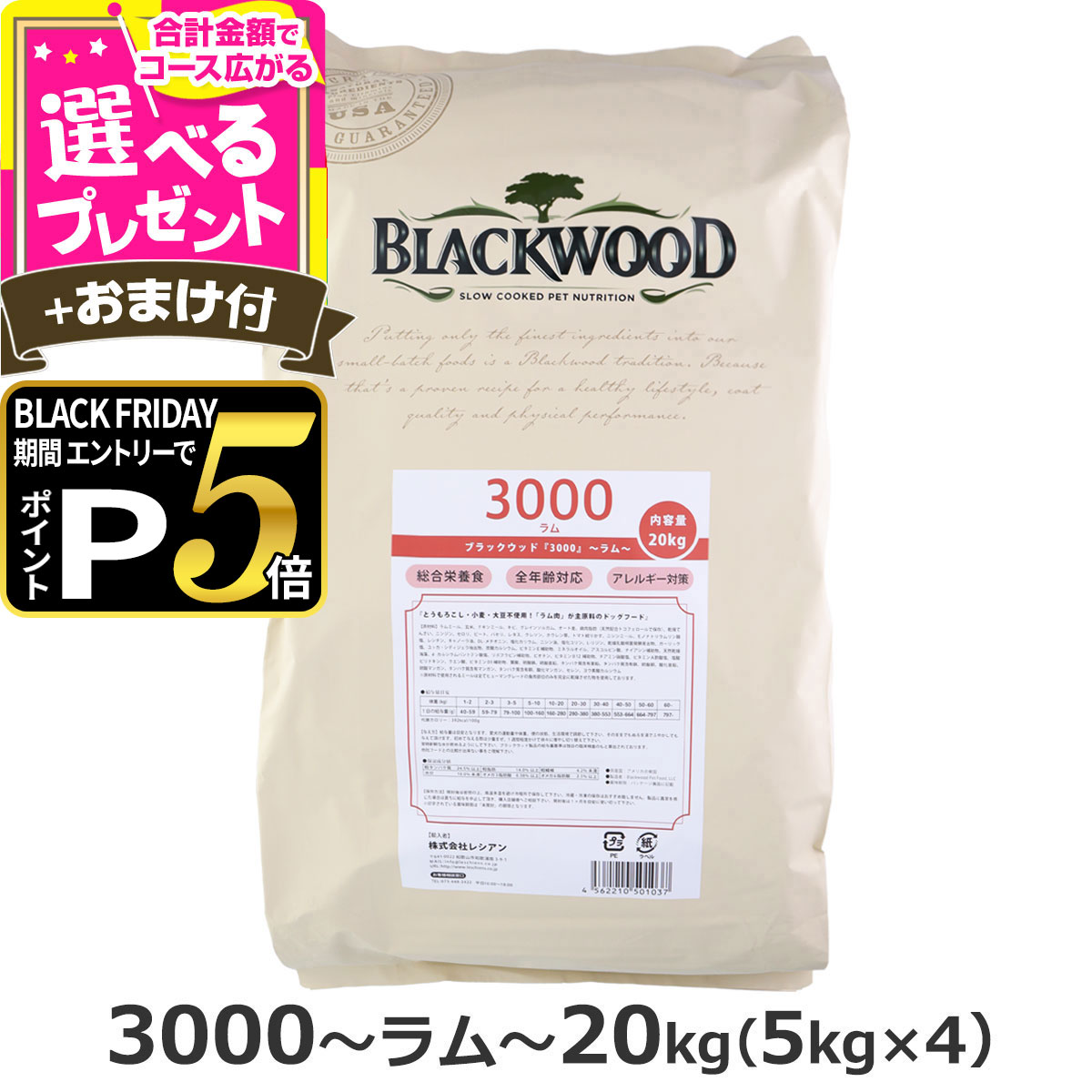 【ブラックフライデー限定!エントリーでさらにP5倍】【順次パッケージ変更】ブラックウッド 3000 20kg(分包4袋入)+選べるおまけ付き 犬 ドッグフード Blackwood ラム 羊 小粒 パピー 子犬 成犬 アダルト シニア ドライ 大袋 消化器 体臭 筋肉 皮膚 被毛【D】