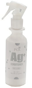 PCK Ag エージーコンディショナー 200ml Ag+(銀イオン)は皆さまの周りの体臭防止スプレー、お風呂の防カビ剤などでご存じのとおり、カビやマラセチアなどに抗菌作用があります。ペットの体臭も人の加齢臭と同じようなメカニズムで発生しますが、銀イオンの抗菌効果で雑菌の繁殖を制御し、結果、体臭を抑えると同時にかゆみを抑え、健康な状態を維持してくれます。 【使用方法】 Agシャンプーで洗った後、水分を拭き取ります。地肌が見えるように毛を分けてスプレーした後、よく乾かします。小型犬で7〜8プッシュ、週2回を目安にしていただくと効果が長持ちします。 【原料】 純水・オリーブオイル・銀イオン・ベタイン・カチオン化コンディショニング成分・クエン酸・香料