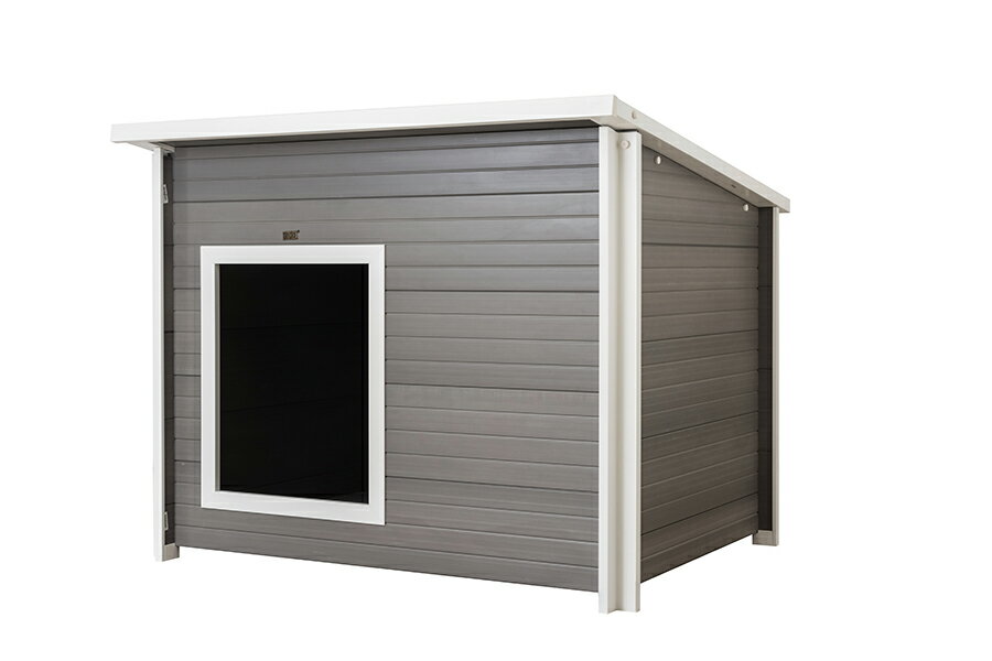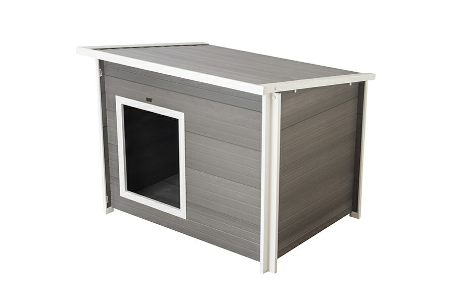 日本メーカーの商品ではほとんどない大型犬や超大型犬やうさぎ小屋などに特化したオリジナルのEcoFlexというエコ素材を使用したペットメーカー! ecoFlexとはリサイクルポリマーと木をブレンドして作られたエコ素材で、その特徴は全天候型(気温と湿度の変化に対応)、腐敗しにくい(腐りにくい)虫が寄ってきにくい、常に形状が安定しているという特徴があります。 またねじれにくい、曲がりにくい、ひびが入りにくいなど様々な特徴があり、中のわんちゃんを傷つけることがありません。 最も人気のあるフラットルーフタイプの犬小屋です。 ecoFlexでできています。 犬小屋部分も非常に大きく、大型犬や超大型犬でも余裕の大きさです。 天井部はスライドで取り外しできます。 サイズXL外寸:L108×W82.5×H75cm、内寸:L94.5×W59×H64cm、ドア:H46×W35.6cm、耐荷重63.5kgまで ※日本総輸入元限定カラー。