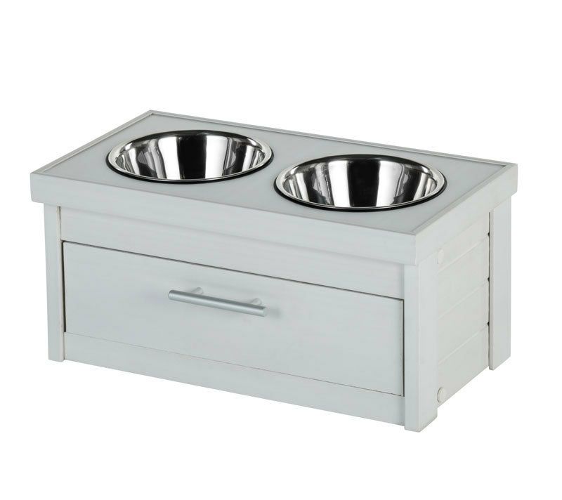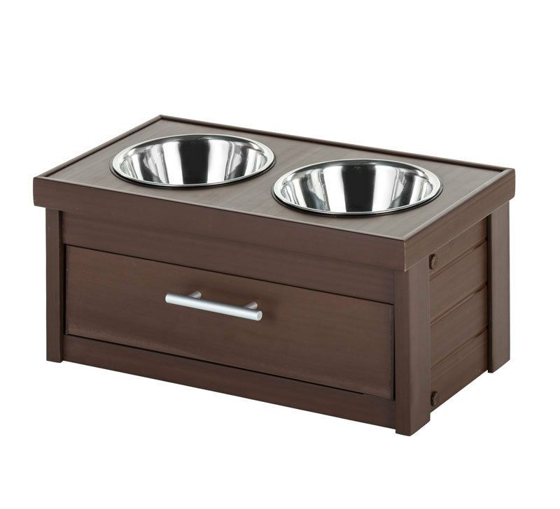 ecoFlexとはリサイクルポリマーと木をブレンドして作られたエコ素材で、その特徴は全天候型(気温と湿度の変化に対応)、腐敗しにくい(腐りにくい)虫が寄ってきにくい、常に形状が安定しているという特徴があります。またねじれにくい、曲がりにくい、ひびが入りにくいなど様々な特徴があり、中のわんちゃんを傷つけることがありません。 エサ入れなどのフードストッカーとフードボウルがセットになったダブルダイナーです。ecoFlexでできています。普段はそのまま食器台として首の高さに負担がかからないような高さになっています。 ストレージ自体におもちゃやドッグフードなどを収納できるボックスになっていて、フードボウルも取り外し可能です。フードボウルを装着する部分にはゴムパッキンがついているのでストレージ内に水やごはんが入るのを防ぎます。 サイズ:42×22.8×20cm