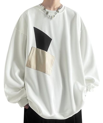 [Bligo]パーカーメンズファッション長袖春服無地トレーナー白ラウンドネック人気ブランドビッグストリート系スウェット大きいサイズカジュアル厚手秋冬流行りの服White-M