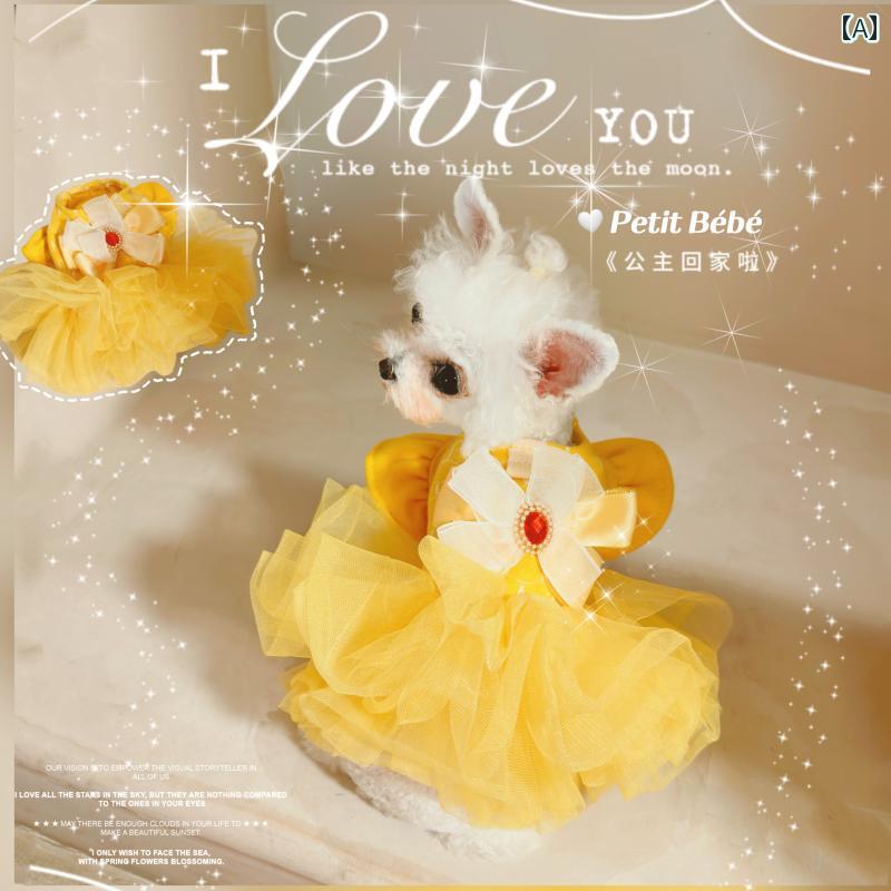 犬服 小型犬用 秋冬 プリンセス チュール ワンピース かわいい 華やか フォーマル セレモニー お出かけ マルチーズ トイプードル レース リボン リード穴付き