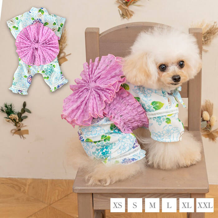 クレイジーブー あじさい柄甚平 XS/S/M/L/XL/XXL 浴衣 夏 和服 イベント 紫陽花 お揃い 小型犬 中型犬 cb241074 犬服 犬 服 犬用甚平 Crazy Boo ※一部サイズお取り寄せ※