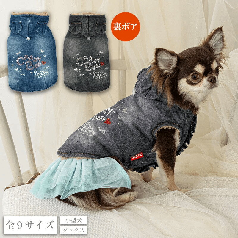 クレイジーブー デニムアウター 全9サイズ 秋 冬 くま 裏ボア 上着 デニム あたたかい 暖かい お揃い 小型犬 ダックス cb251129 犬服 犬 服 Crazy Boo ※お取り寄せ商品※