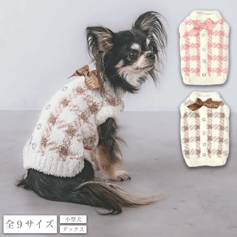 クレイジーブー マシュマロチェックニット 全9サイズ ニット 秋 冬 チェック 袖なし お揃い 小型犬 ダックス cb251160 犬服 犬 服 Crazy Boo
