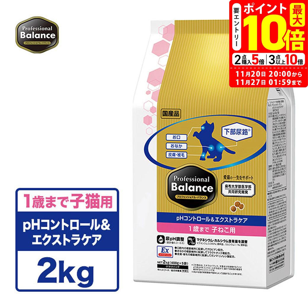ポイント最大10倍!11/20 20:00〜11/27 01:59まで|ペットライン プロフェッショナルバランス pHコントロール&エクストラケア 1歳まで 子ねこ用 2kg 送料無料