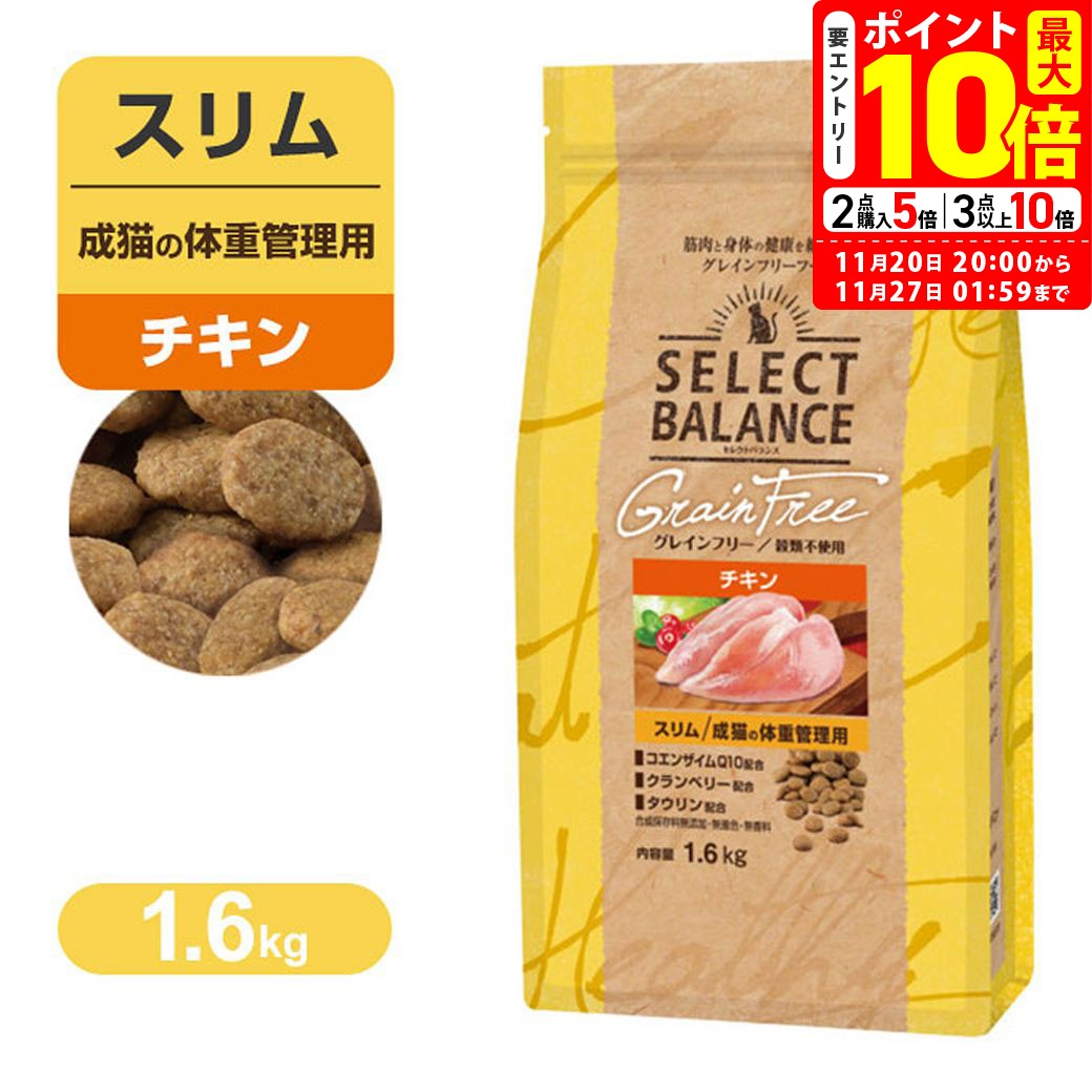 ポイント最大10倍!11/20 20:00〜11/27 01:59まで|セレクトバランス グレインフリー スリム 成猫の 体重管理用 小粒 チキン 1.6kg