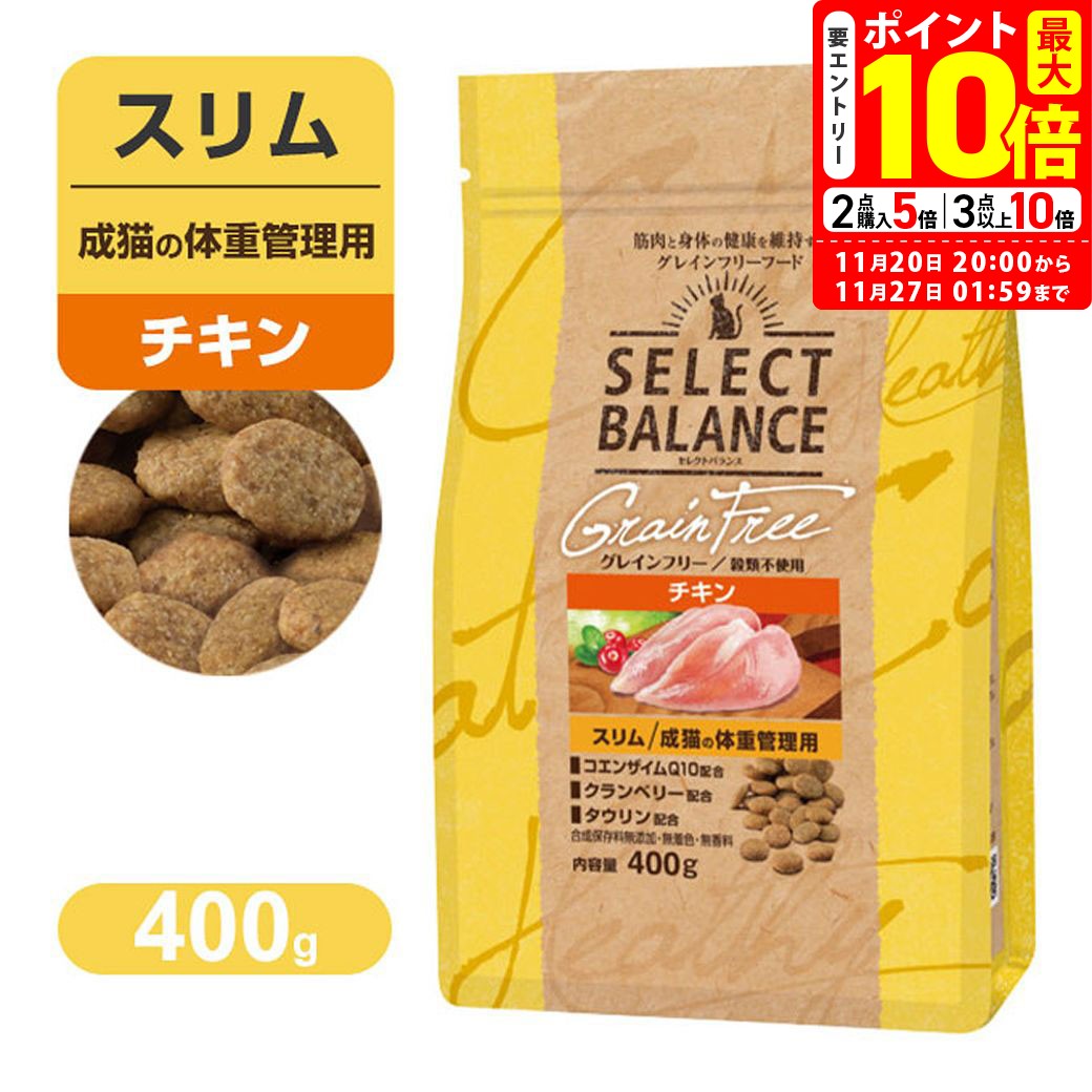 ポイント最大10倍!11/20 20:00〜11/27 01:59まで|セレクトバランス グレインフリー スリム 成猫の 体重管理用 小粒 チキン 400g