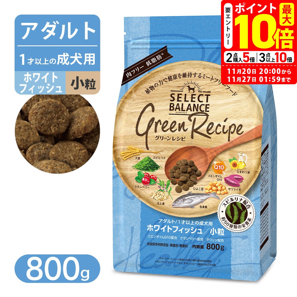 ポイント最大10倍!11/20 20:00〜11/27 01:59まで|セレクトバランス グリーンレシピ ホワイトフィッシュ 小粒 アダルト 1才以上の成犬用 800g
