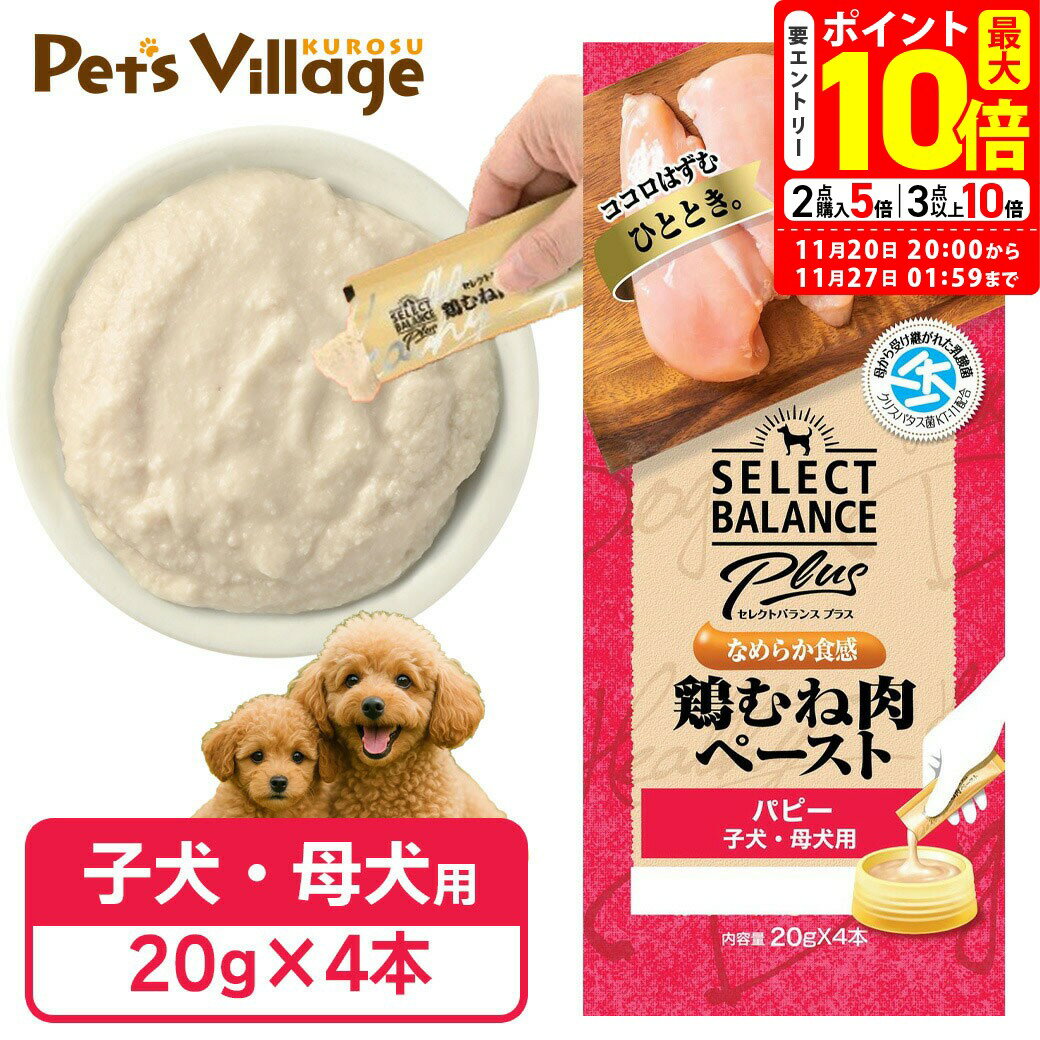 ポイント最大10倍!11/20 20:00〜11/27 01:59まで|セレクトバランス プラス なめらか食感 鶏むね肉ペースト パピー 子犬・母犬用 20g×4本