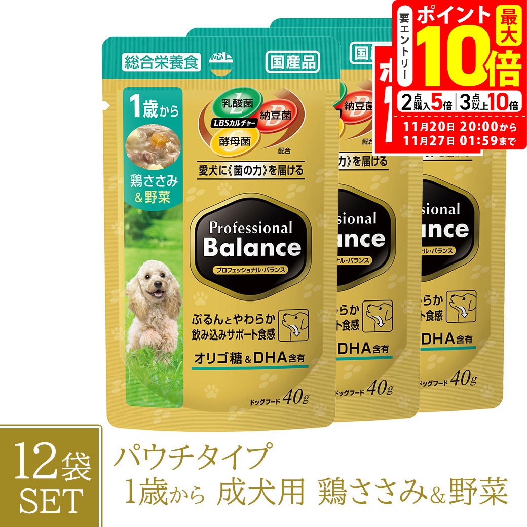 ポイント最大10倍!11/20 20:00〜11/27 01:59まで|ペットライン プロフェッショナルバランス パウチ 1歳から 成犬用 鶏ささみ&野菜 40g ×12個