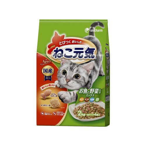【エントリー特典 ポイント進呈 11/27 1:59まで】ユニ・チャーム ねこ元気おいしさバランス全猫用 お魚と野菜入りミックス かつお・白身魚入り 2.0kg