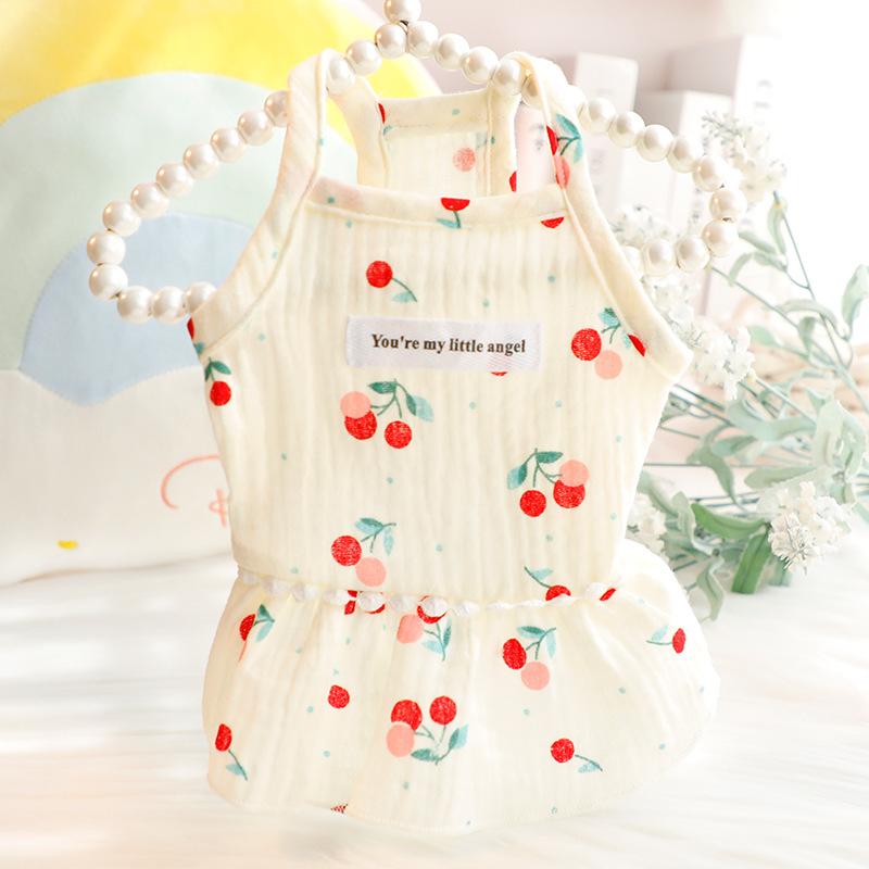 ドッグウェア 小型犬 猫用 春夏 薄手 軽量 チュールスカート プリンセス キャミソールワンピース コットン さくらんぼ柄 うさぎ柄 かわいい 清涼感 お散歩 普段着