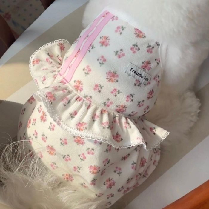 ※予約販売【FREDDIE TALE】Rosy Baby Romper(White Bouquet) 犬服 ドッグウェア 犬の服 小型犬 小型犬服 犬用品 ドッググッズ 韓国 スリーブレス 春