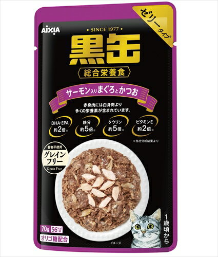 【ペット用品】P-4580101260733 アイシア 黒缶パウチ サーモン入りまぐろとかつお 70g 【BP-60】