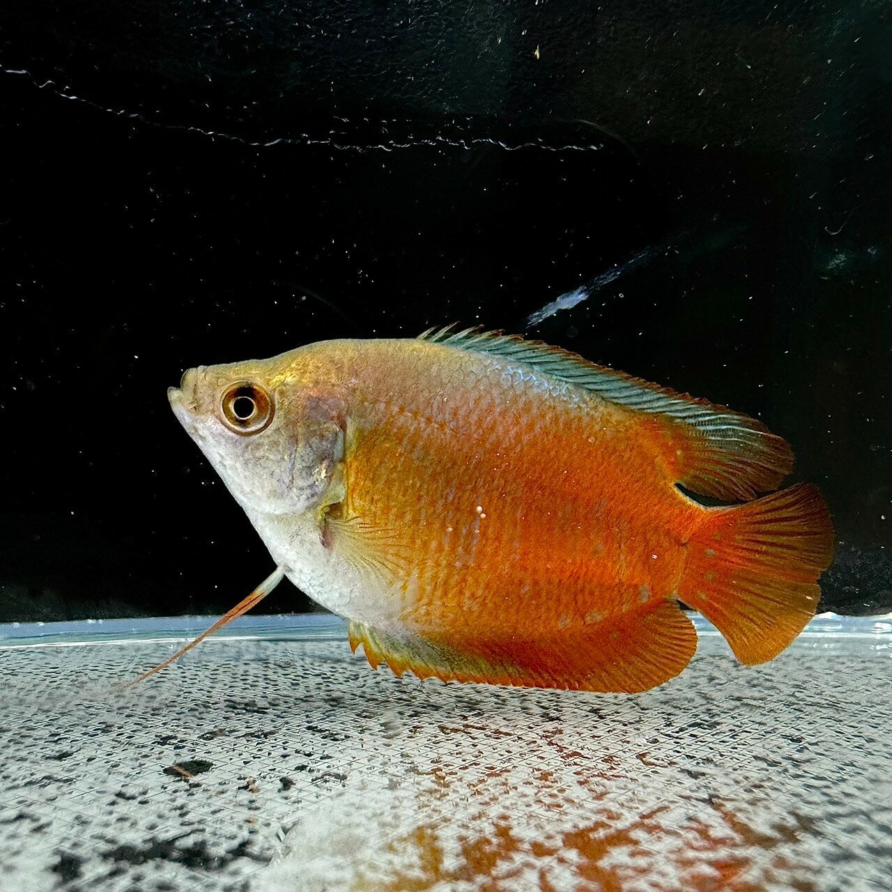 商品情報 学名Colisa lalia var. 内容ブロードレッドドワーフグーラミー (Mサイズ) (3匹) 販売サイズ3~4cm(目測) 最大体長6cm前後 混泳可能 配送についてヤマト運輸での発送となります。・特にご希望がない場合はお届け時間帯を一番早い時間帯とさせていただきます。・運送業者の都合上、南東北 、関東(一部)、信越(一部)、九州地方は午前中着不可となります。・お届けに翌日指定が不可の地域(北海道、北東北、沖縄)の発送はできません。ご希望の場合は陸送2日掛けて送りいたしますが、死着した場合は必ずノークレームでお願いします。注意事項・生体の画像はイメージです。撮影環境によりお届けする個体とは柄や色合いが異なる場合がございます、特に到着直後や水質の違い、水槽の環境に因って体色も変化しますので、あらかじめご了承ください。・表記サイズは目測になります、厳密ではありません。・個体サイズや模様、雌雄の指定についてはお受け致しかねますのでご了承下さい。・状態が良い個体のみ発送しますが、やむを得ず死着が発生する場合がございます、死着補償はございませんのでご了承下さい。・当店ではネット通販以外での販売も行っておりますので入れ違いで出品中の商品が売れてしまっている場合もございます。その際には大変申し訳ございませんが、キャンセルをさせていただく場合がございます。・生体の場合、ご注文後に調子が悪そうな場合は事前にご相談させていただくことがあります。死着保証いかなる場合も死着保証がない事をご理解いただいた上での価格設定、お取引となります。ご購入の際は必ずご納得の上ご注文をお願いいたします。※死着保証記載商品を除くブロードレッドドワーフグーラミー (Mサイズ) (3匹)不二熱帯魚 熱帯魚 淡水魚 グラミー ブロードレッドドワーフグーラミー 5