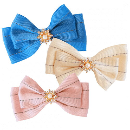 GODPIVA シルバーラインバレッタ 春 夏 犬用 ヘアアクセサリー お揃い リボン ビジュー おしゃれ かわいい お出かけ オールシーズン 日本製 BLUE BEIGE PINK ※お取り寄せ商品※