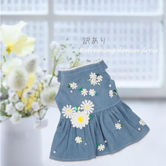 【訳あり】ワンピース 0号 5号 ワンピ コットンレース おしゃれ かわいい カジュアル デニム 花 フラワー ビジュー 大人かわいい レース ストーン ドレス 極小犬 パピー 超小型犬 小型犬 犬 猫 ペット ドッグウェア 服 犬の服 猫の服 犬服 猫服 洋服 AT50 AT51