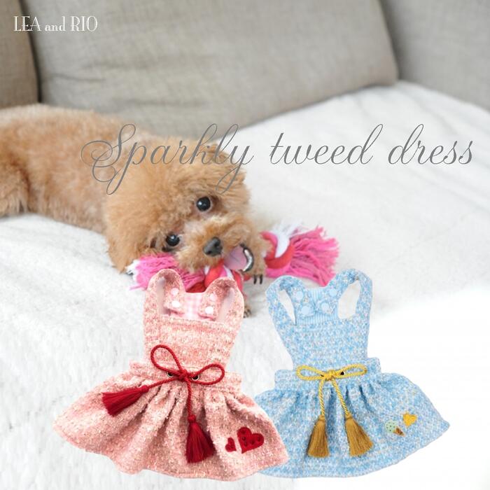 かわいいがてんこ盛りワンピース 0~5号 ウェア 千鳥格子 タッセル レース ハンドメイド ビジュー ストーン ビーズ ツイード オールシーズン カジュアル ワンピ ドレス 極小犬 パピー 超小型犬 小型犬 犬 猫 ペット 服 犬服 猫服 犬の服 猫の服 洋服 返品交換不可