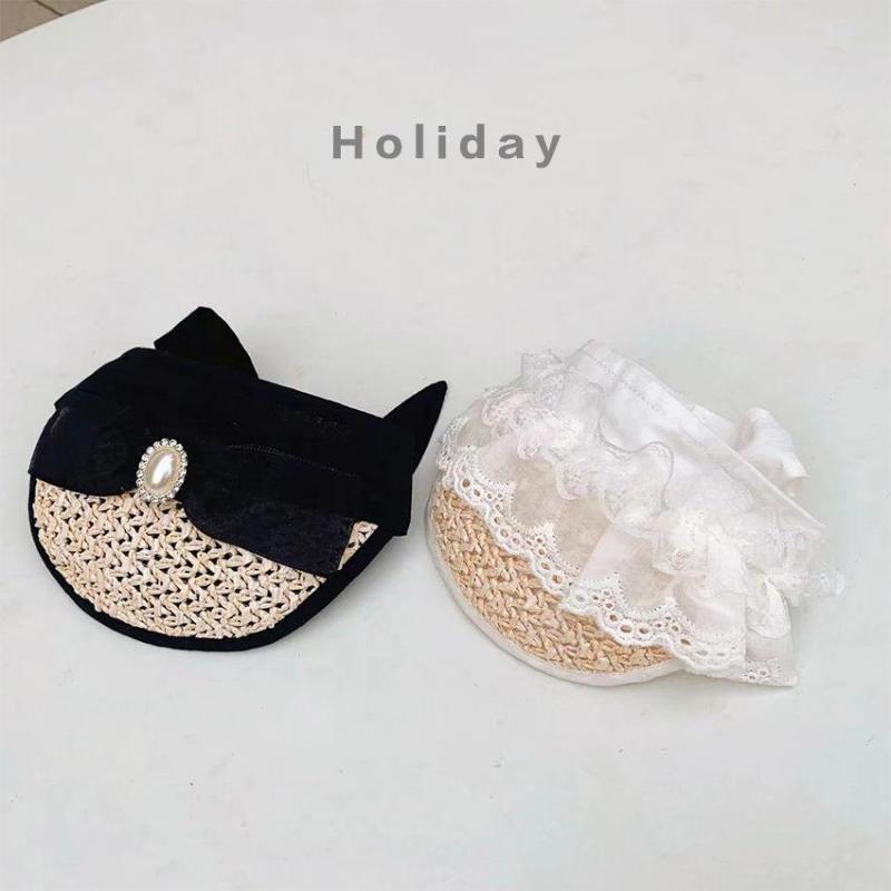 犬 帽子 日よけ おしゃれ ペット用 夏 ハット 屋外 アウトドア ビジュー レース リボン お出かけ 散歩 旅行 写真 撮影 猫 紐 調節 麦わら 白 黒