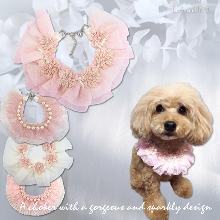 【スーパーSALE限定 半額】チョーカー S~Lサイズ アクセサリー ネックレス ネックアクセ 洋服 ドッグウェア dog チュール パールビーズ ビーズ ビジュー かわいい レース キラキラ 極小犬 パピー 超小型犬 小型犬 犬 猫 ペット 服 犬服 猫服 猫の服 犬の服 秋