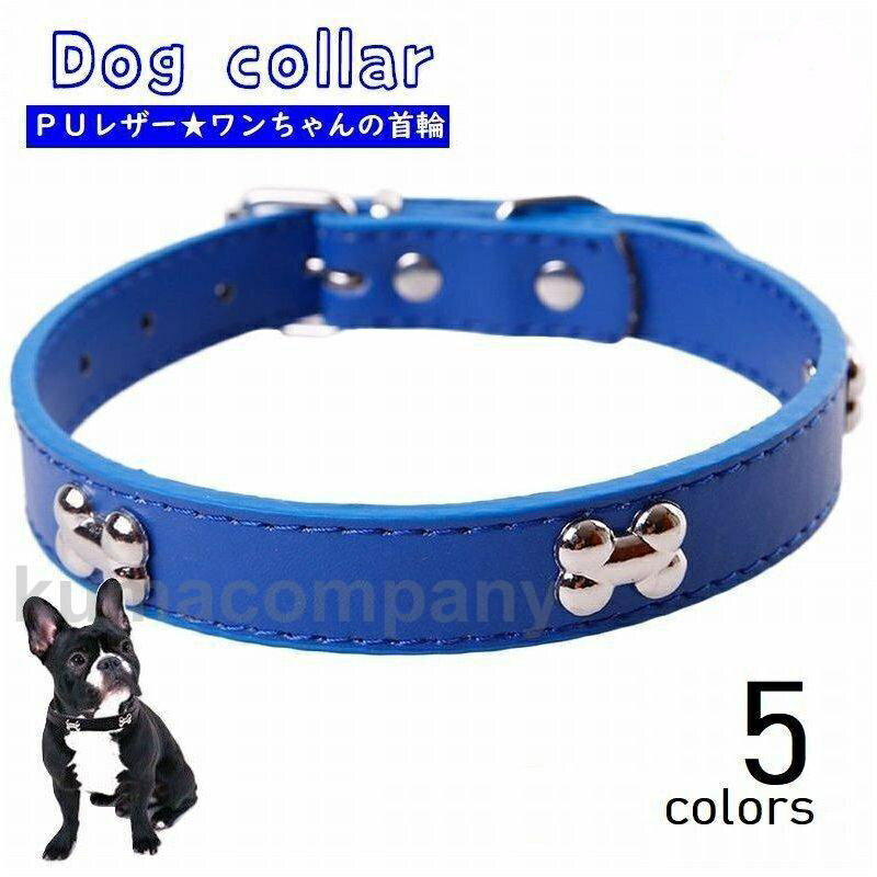 犬用首輪 首輪 犬用 フェイクレザー 合皮 ビジュー 骨型 ボーン ベルト 調節可能 小型犬 中型犬 大型犬 犬用品 ペット用品 シンプル 可愛い か