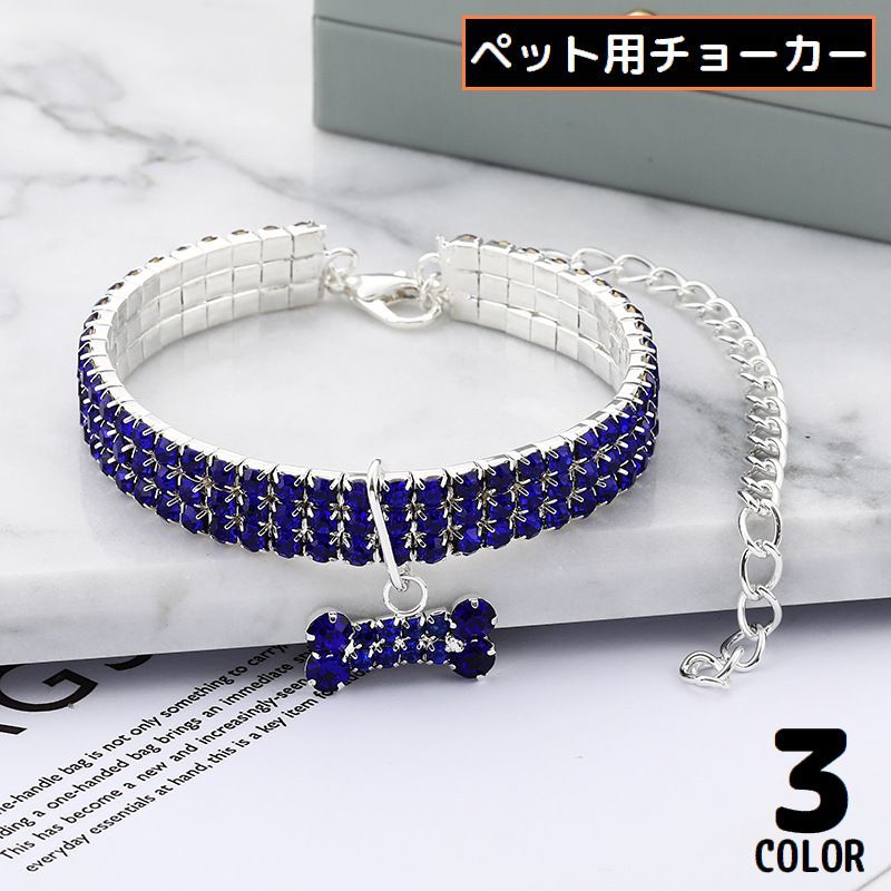 送料無料 ペット用チョーカー ネックレス 犬 猫 アクセサリー 首飾り 骨型チャーム ラインストーン ビジュー キラキラ 可愛い おしゃれ