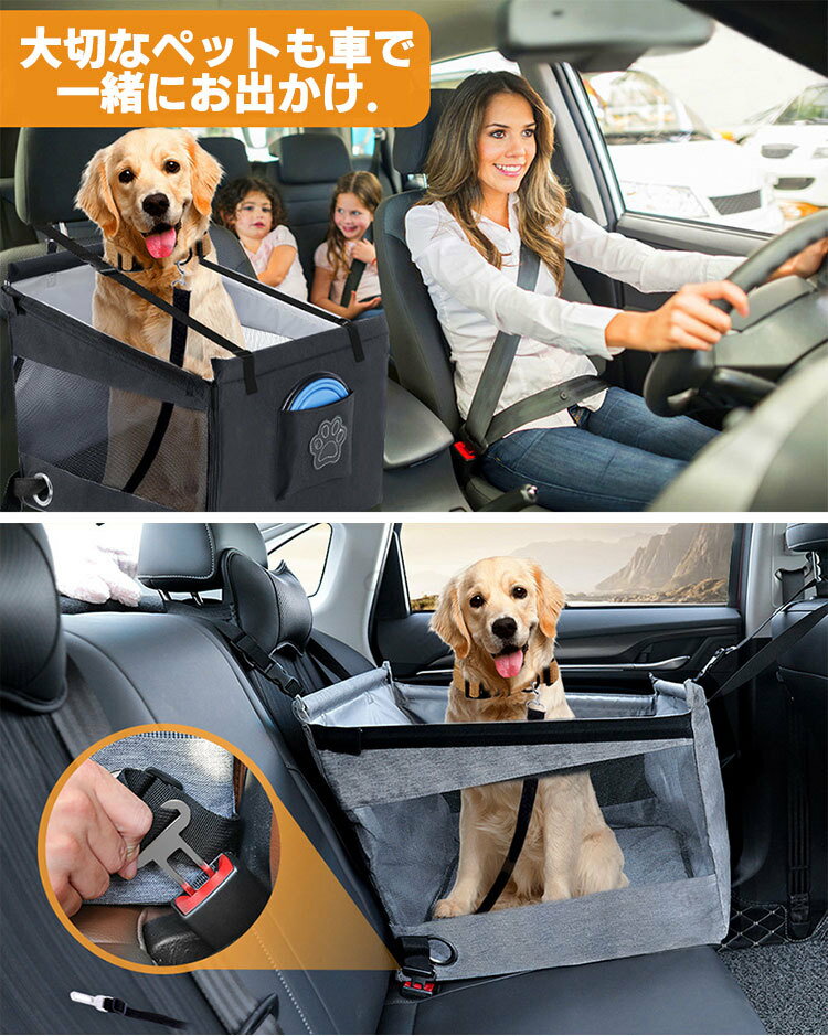 ペットドライブボックス 取り外し可能 折り畳み式 ドライブシート 防水 耐摩擦 飛び出し防止設計 柴犬 ブルドッグ ゴールデンレトリバー対応 小型 中型 大型ペット用 猫用 旅行用ペットキャリー 3色 グレー ブラック ブラウン
