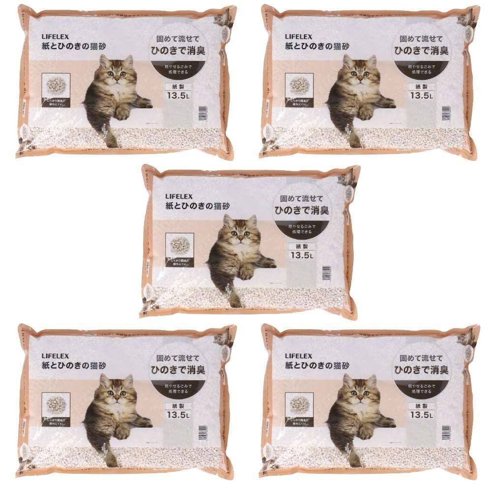 【BLACK FRIDAYセール!11/27 1:59まで】コーナンオリジナル LIFELEX 紙とヒノキの猫砂 13.5L KNW12−5940 ×5個セット