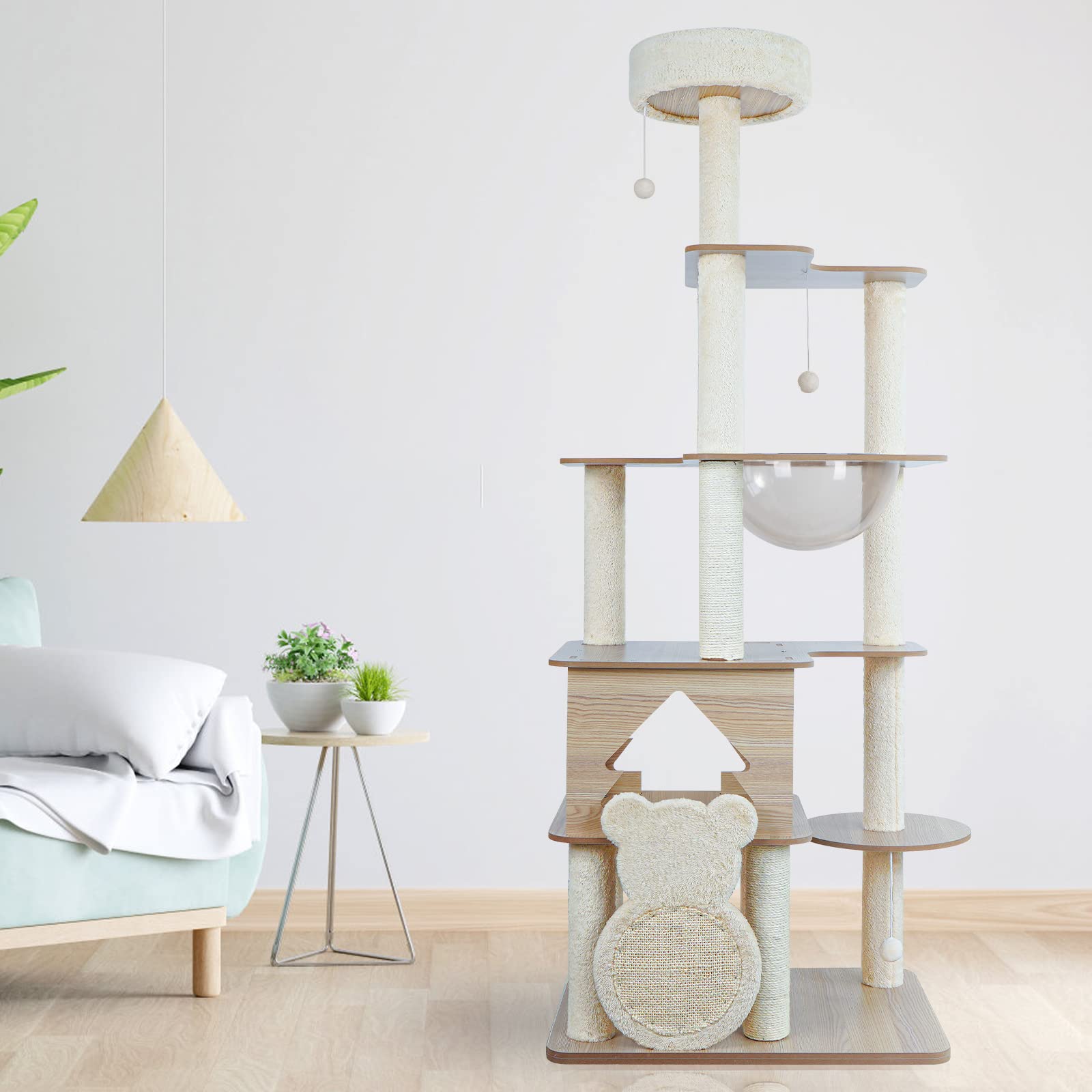 🌲【猫ちゃんの遊び場】:広いジャンプ台、見晴らしのよい高台、多層キャットタワーのデザインは、猫の登山の性質を満足させます。休憩できる場所はたくさんあるので、多頭飼いの場合でもご使用できます!娯楽、運動、休みを集めの遊び場としてピッタリの室内用猫タワーです。 🌲【精工なデザイン】:透明宇宙船、360°から愛猫が様々な遊び姿が見える。爪とぎポールは天然サイザル麻で作られており、無臭でほこりがなく、猫の爪とぎ本能を満たし、家具損害防止。猫ちゃんの狩猟本能を掻き立てられ、興味を引き寄せ、夢中になります。 🌲【キャットタワー 木製】:厚くて広いベースは高品質の人工木材、耐荷重性が強く、割れにくく、耐久性があります。天然蜜蝋コーティング、掃除が簡単、高い環境保護基準防カビ防虫、無毒健康。自然素材の風合いと心落ち着かせる色味で、お洒落な和モダンインテリアを実現し、和室にも洋室にも馴染みやすいです。 🌲【組み立て簡単】サイズ:60長さ x 43幅 x 155高さcm、製品重量:14.8kg。日本語の取扱説明書が付属しており、文字説明と図解で部品明細、組み立て方法、お手入れ方法などをわかりやすく解説しています。また、取付ビデオをサイトに搭載されています。高級感溢れる木製のキャットタワーが手に入ります。 ☆ご注意:付属してる宇宙船は生産ラインの仕様でねじ穴がありますが、実際ねじが不要です、そのまま置けばいいです。ご勘弁ください。 メーカー希望小売価格はメーカーサイトに基づいて掲載しています メーカー希望小売価格はメーカーサイトに基づいて掲載しています