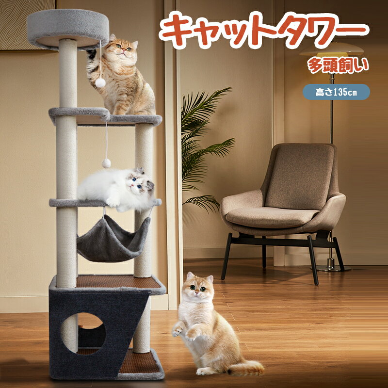 【BLACK FRIDAY限定1000円OFF⇒5280円】キャットタワー 猫タワー キャットタワー木製 大型猫 大きいハンモック キャットタワー据え置き 多機能 人気 ラタン製 キャットタワー ハンモック 運動不足解消 猫アクティビティツリー 多頭飼いも 子猫 大型猫