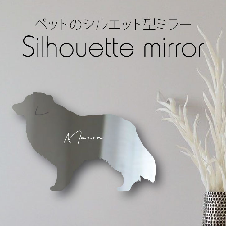 【 BLACK FRIDAY中 P5倍 】 シルエットミラーL【 ボーダーコリー 】 鏡 ミラー かわいい ペット 彫刻 インテリア グッズ プレゼント おしゃれ 映え 映える ギフト メモリアル アクリル 壁掛け 軽量 頑丈 シンプル メイクアップ 取り付け簡単 化粧台用 玄関 犬