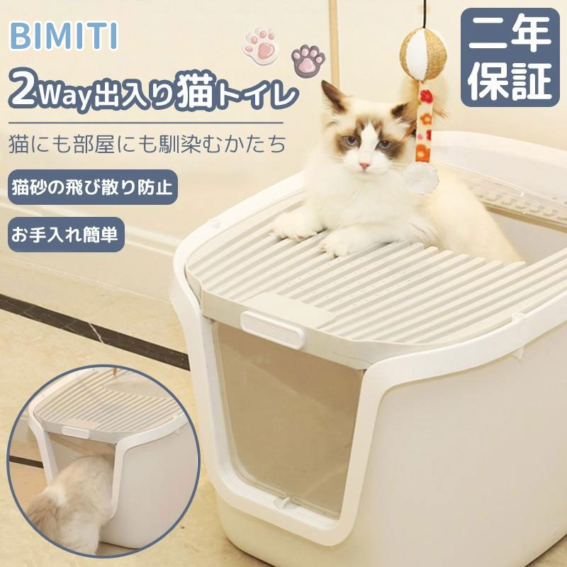 【Black Friday 500円クーポン配布中】BIMITI 猫トイレ 本体 砂飛び散らない カバー 2WAY出入り方法 大型 匂い対策 二年保証 おしゃれ ペット用品 猫用 砂 コンパクト 猫おもちゃ付き